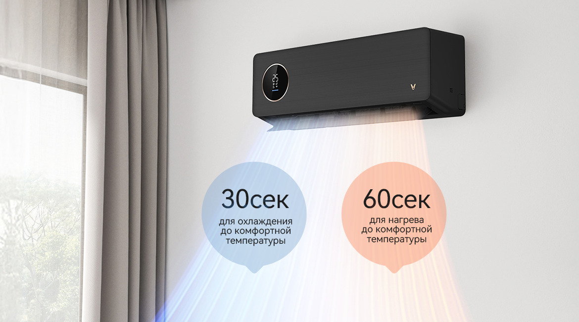 Инверторная система постоянного тока, быстрое охлаждение и обогрев для полного комфорта в доме. 30 с Быстрое охлаждение. 60 с быстрый нагрев