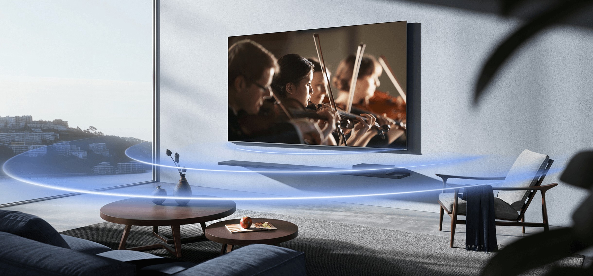 Акустическая система мощностью 30 Вт поддерживает объемное звучание и помогает создать более выразительный эффект при просмотре фильмов, сериалов и концертов. Телевизор поддерживает воспроизведение мультимедиа с USB-носителей, а также работает с популярными форматами видео, аудио и изображений, включая MPEG4, H.265, MKV, FLAC, AAC, DTS, JPEG и PNG. Это делает модель удобным решением для домашнего мультимедийного центра.