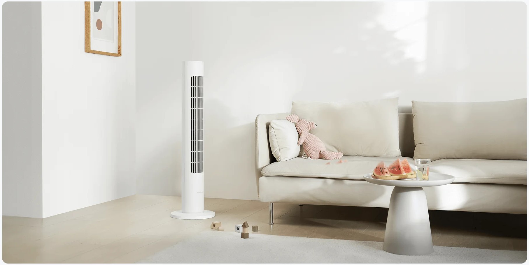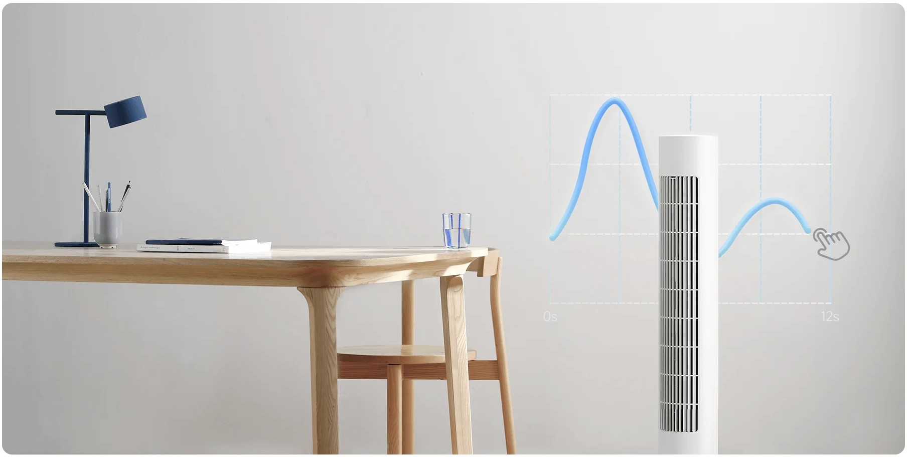 Конструкция воздухоотвода длиной 60 см обеспечивает обширный поток воздуха, а широкоугольная вентиляция на 150° ускоряет циркуляцию воздуха в помещении, что дает более быстрое охлаждение. Также, можно настроить различные углы обдува с помощью приложения Xiaomi Home.